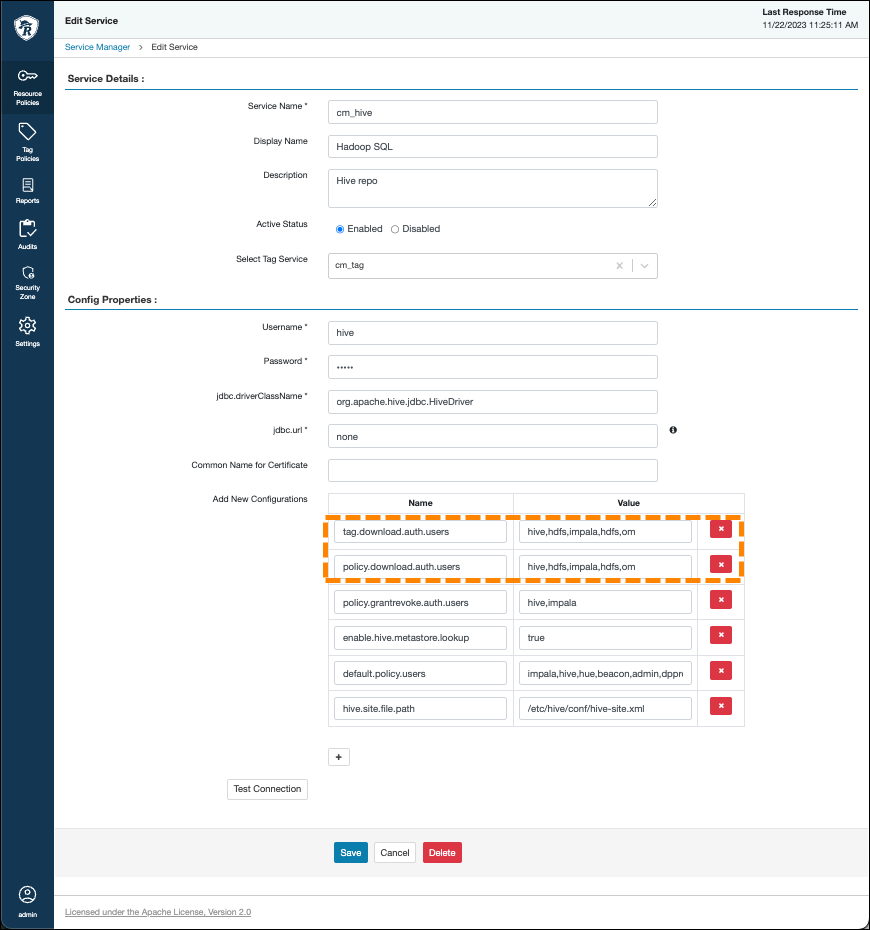 policies defined for Hive tables. RMS is the service that enables Hive-HDFS ACL Sync.