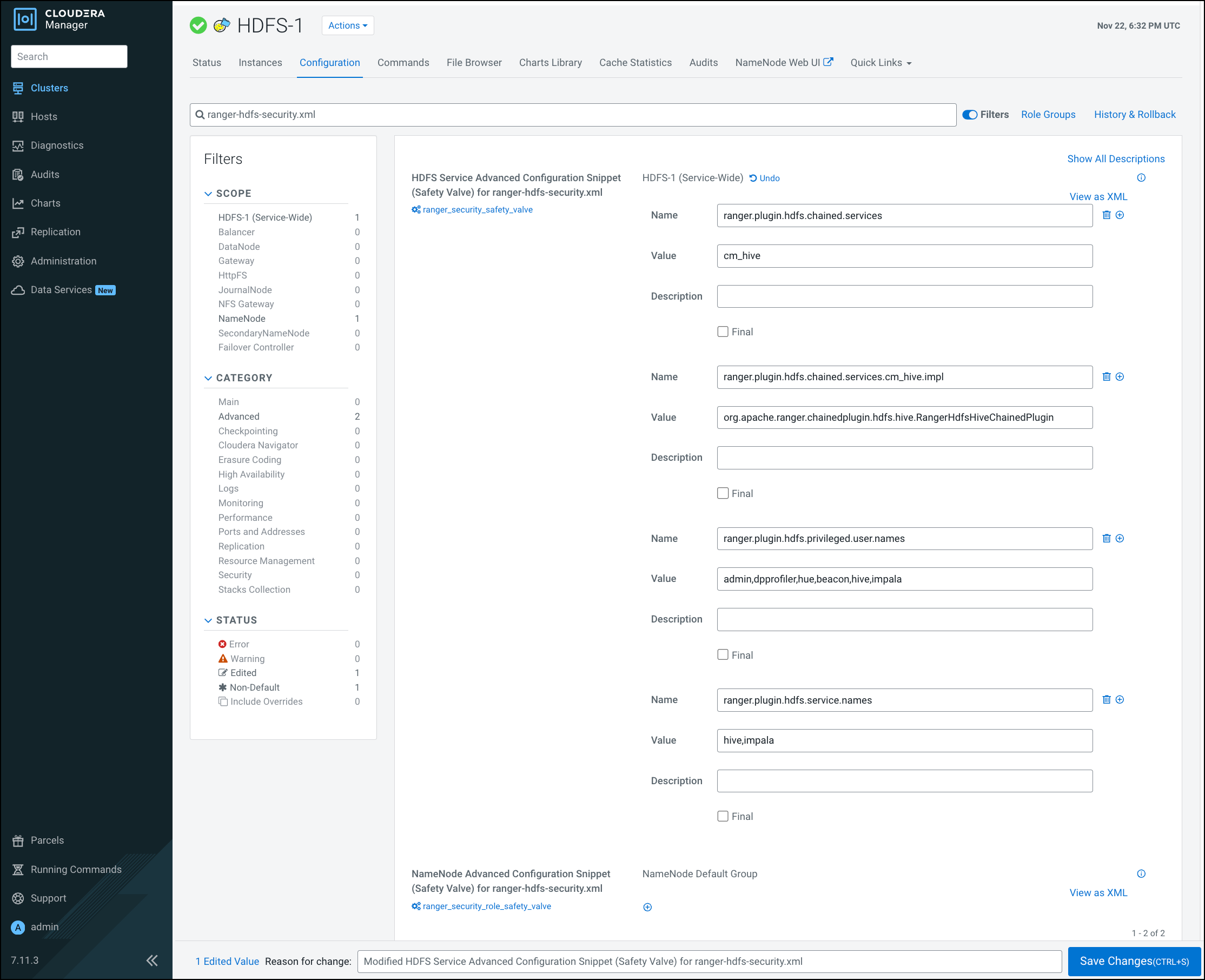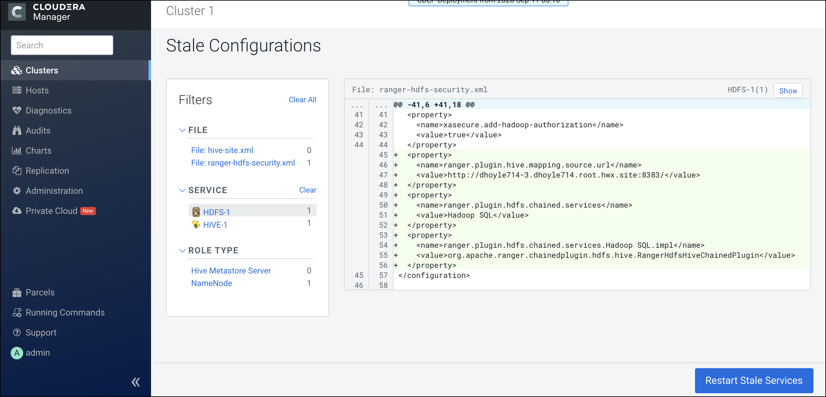 - A CDP Private Cloud Base 7.1.4 or higher version cluster with Apache Ranger, Hive, and HDFS.