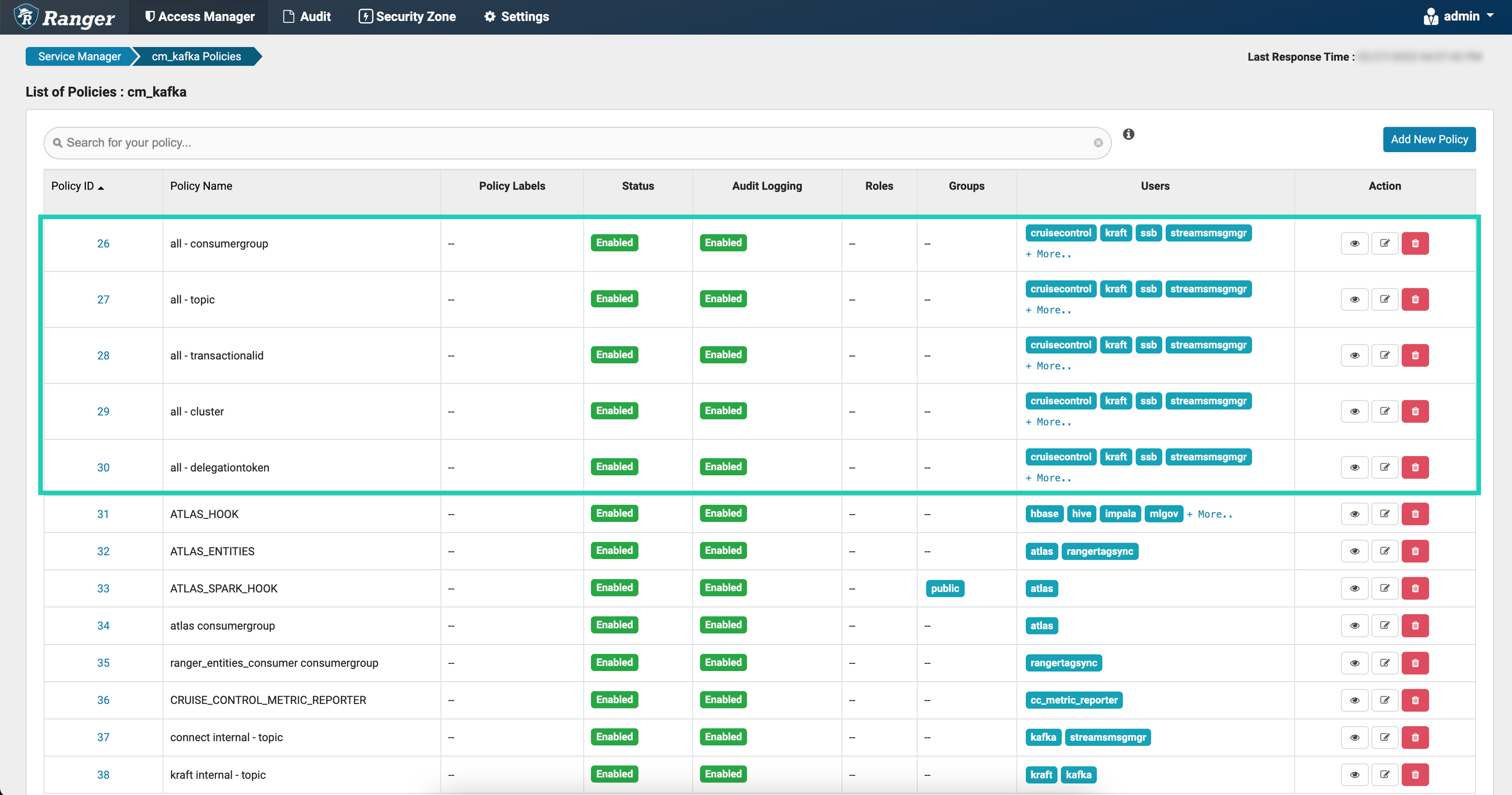 service in Ranger includes a kraft internal - topic policy. This policy grants