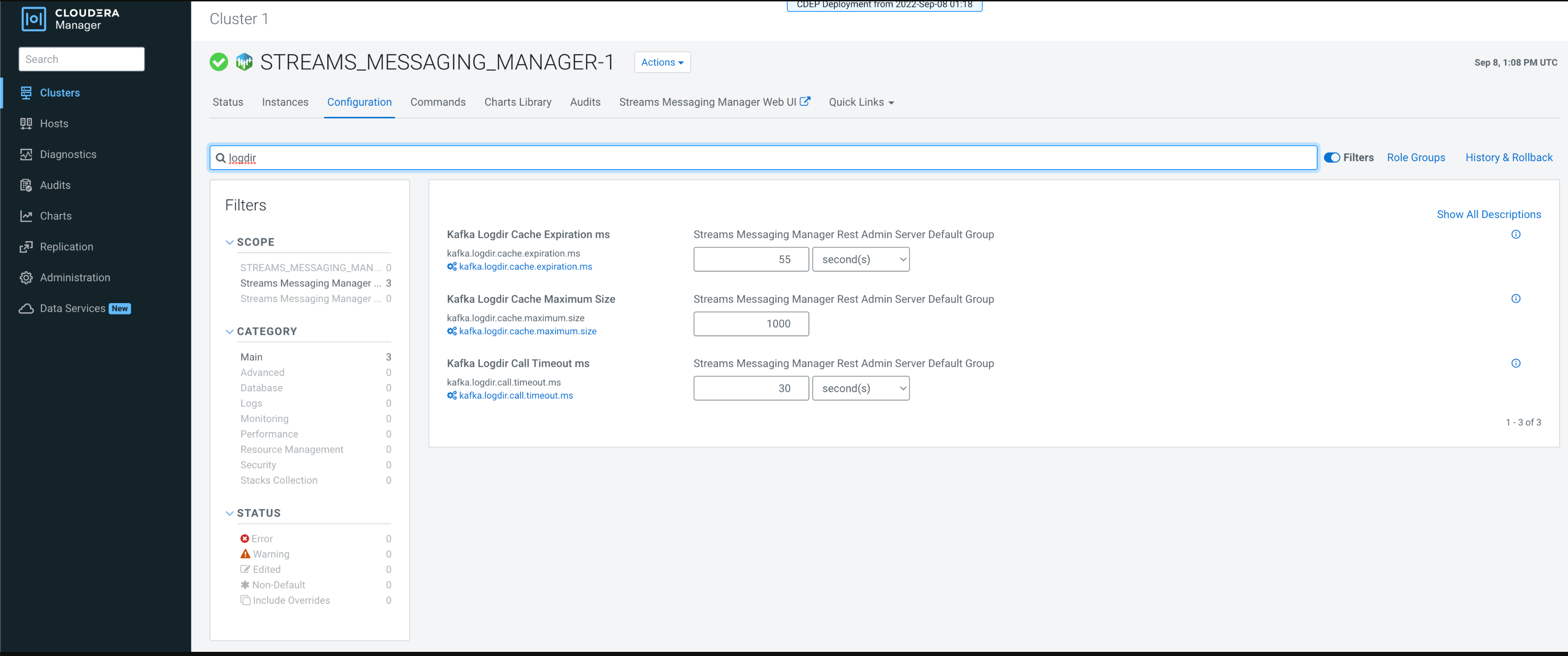 modify these attributes in the Streams Messaging Manager configuration page of the Cloudera Manager UI: