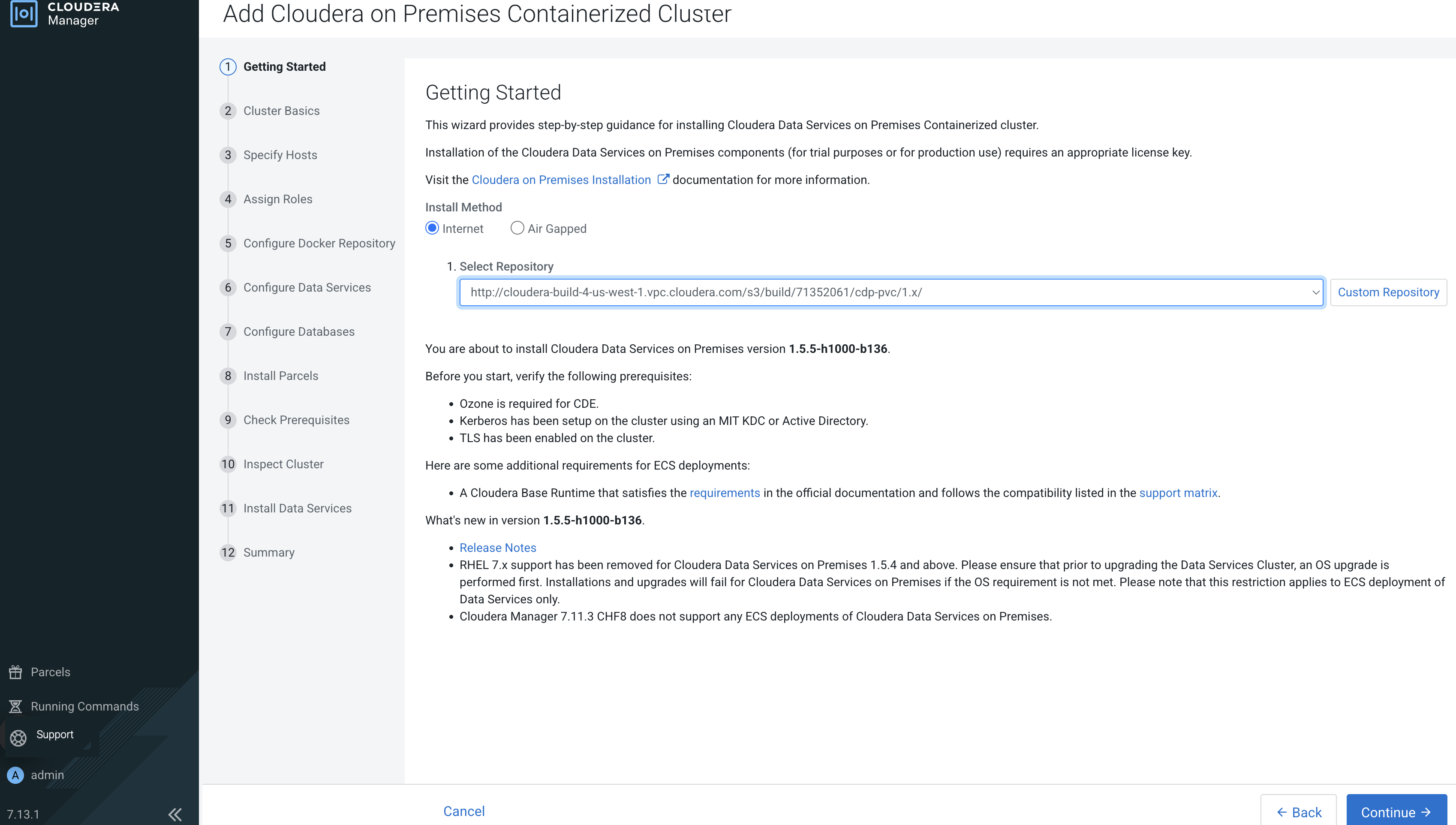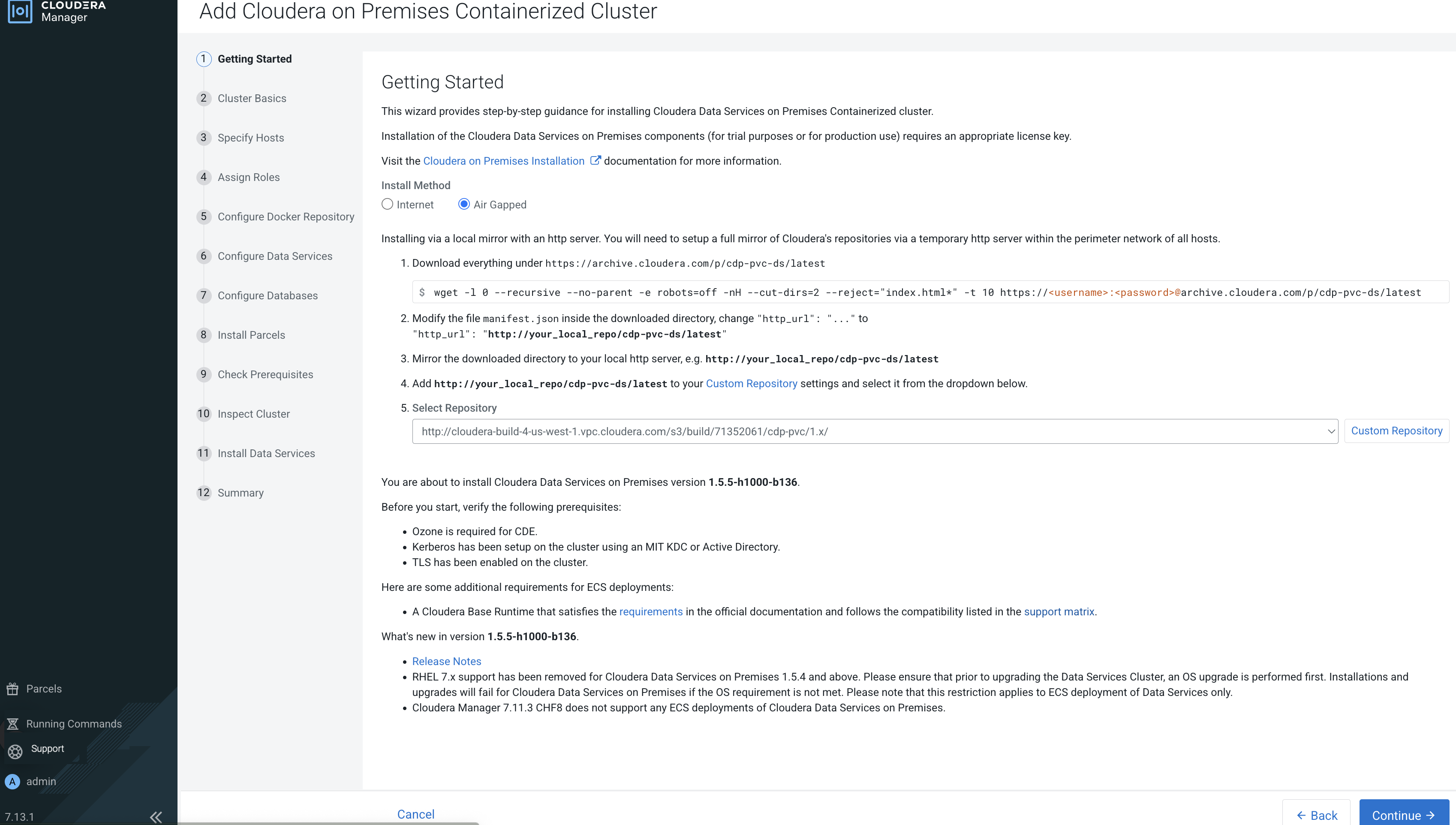 Since, Cloudera Data Services on premises installation is not