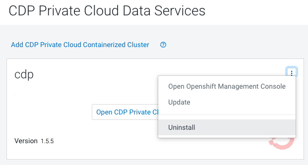 You can uninstall Cloudera Data Services on premises from your Cloudera Base on premises using the Cloudera Manager.