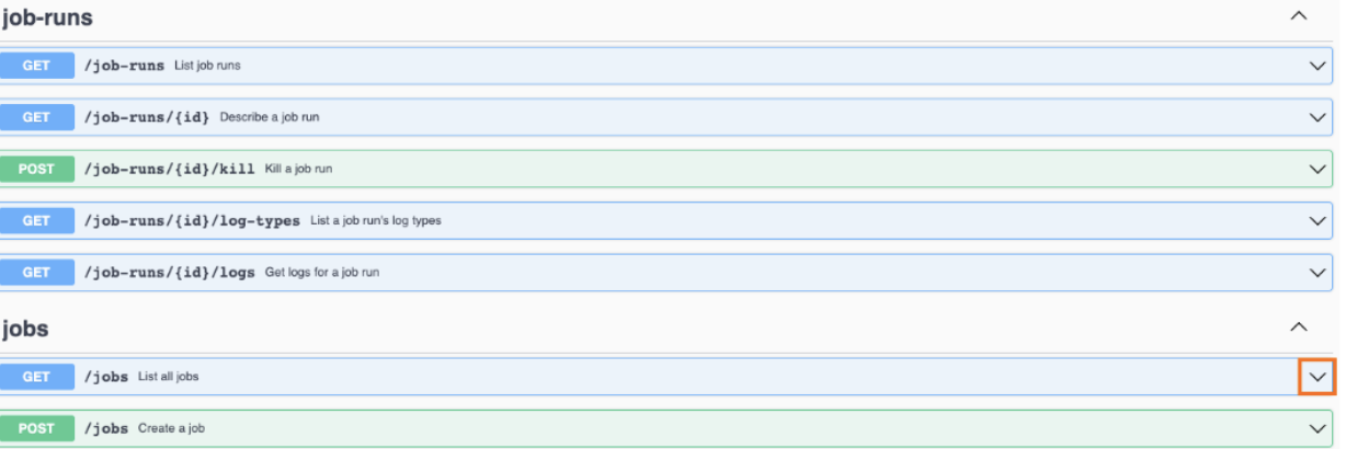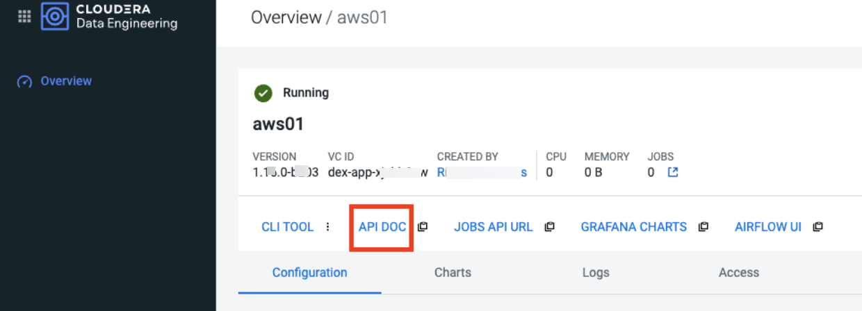 You can access the Swagger page from the Virtual Cluster Service Details page by clicking API DOC as shown below.