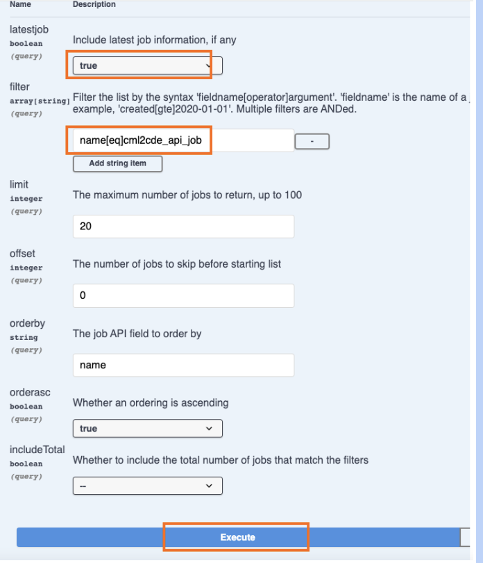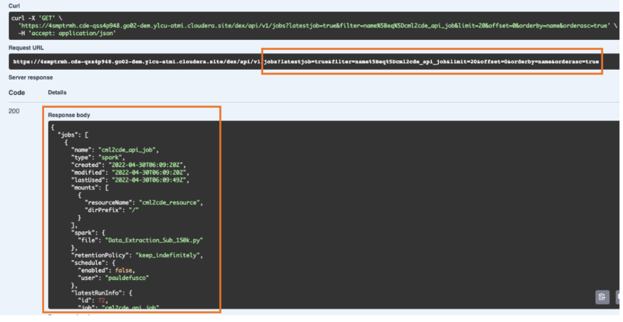 The CDE job options that you pass to the requests can get cumbersome. You can use the Swagger page to construct and test your requests.