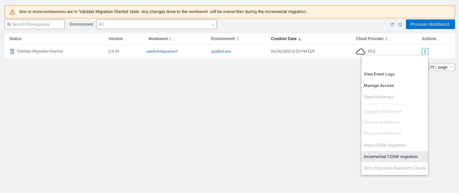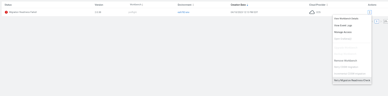 - Validate Cloudera AI for CDSW migration readiness - The readiness or preflight validation creates a new workbench and runs readiness validation on the workbench before performing the migration.