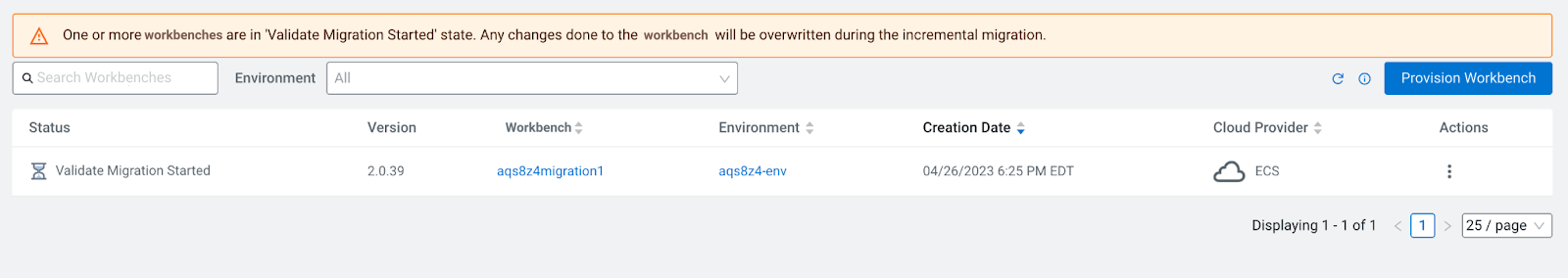 Any changes made to the workbench while you are validating the workbench will be overwritten during the incremental migration and the final migration.