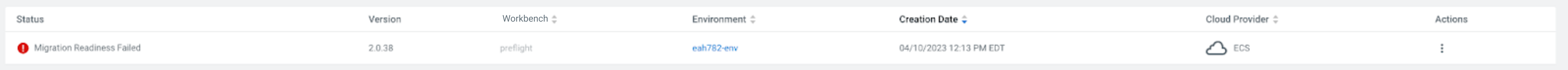 After the readiness validation has completed, the Migration tool displays a status. You can see the readiness validation summary in the Workbench Details page.