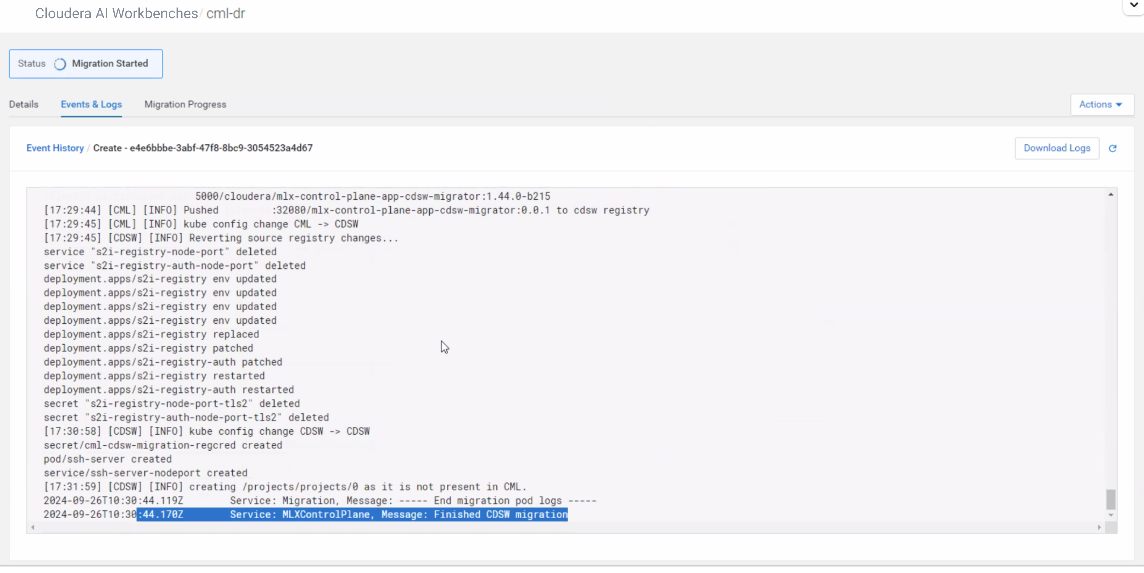 Problem: If the Project being migrated from CDSW to Cloudera AI is large, it can get stuck, frozen, while waiting for the Project information to get migrated. After a while, the logs display that the migration was successful, however the UI is still unavailable.