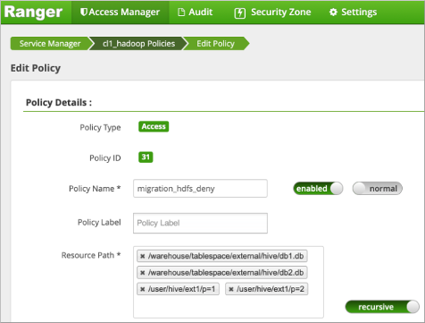 policies in Ambari.