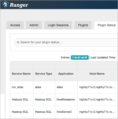 1. From Cloudera Manager, go to Clusters > Ranger > Ranger Admin Web UI > Audit > Plugin Status.