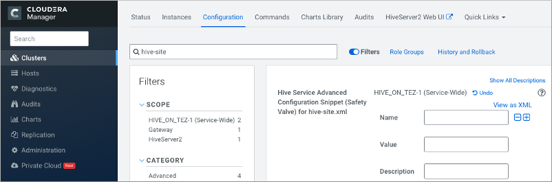 Recommendations. You use the Safety Valve to add these properties to hive-site.xml as