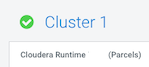 - The version of CDH or Cloudera Runtime and whether the cluster was installed using parcels or packages. It is displayed next to the cluster name on the Home page.