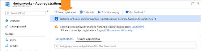 On Azure Portal, navigate to the Azure Active Directory > App Registrations and click on + New Registration: