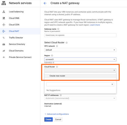 requires a NAT gateway to be provisioned. Note that NAT gateway creation will require a cloud