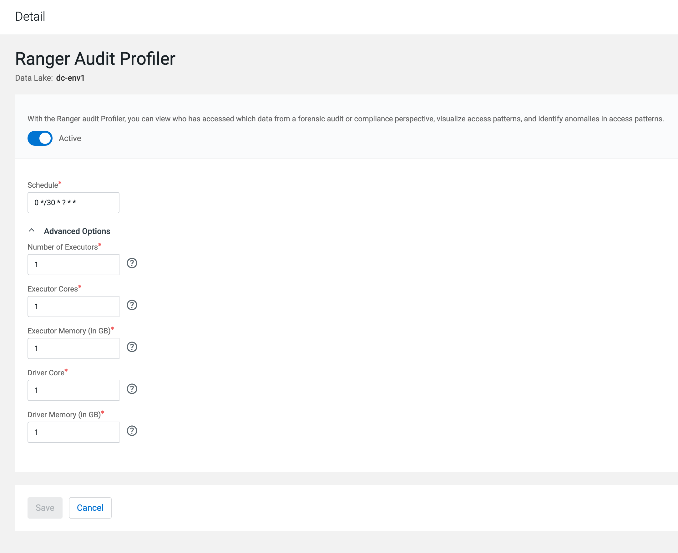 In addition to the generic configuration, there are additional parameters for the Ranger Audit Profiler that can be optionally edited.