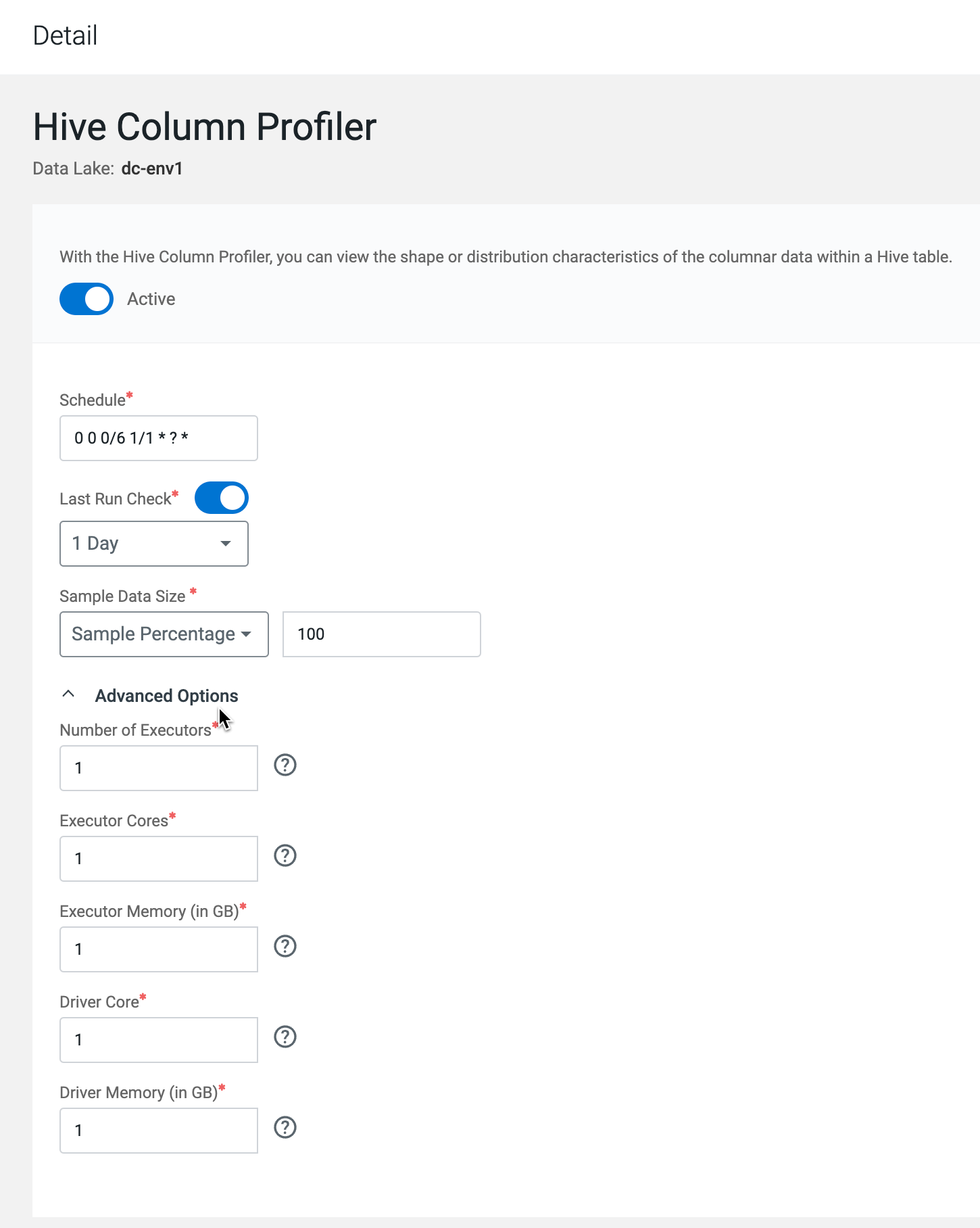 In addition to the generic configuration, there are additional parameters for the Hive Column Profiler that can be optionally edited.