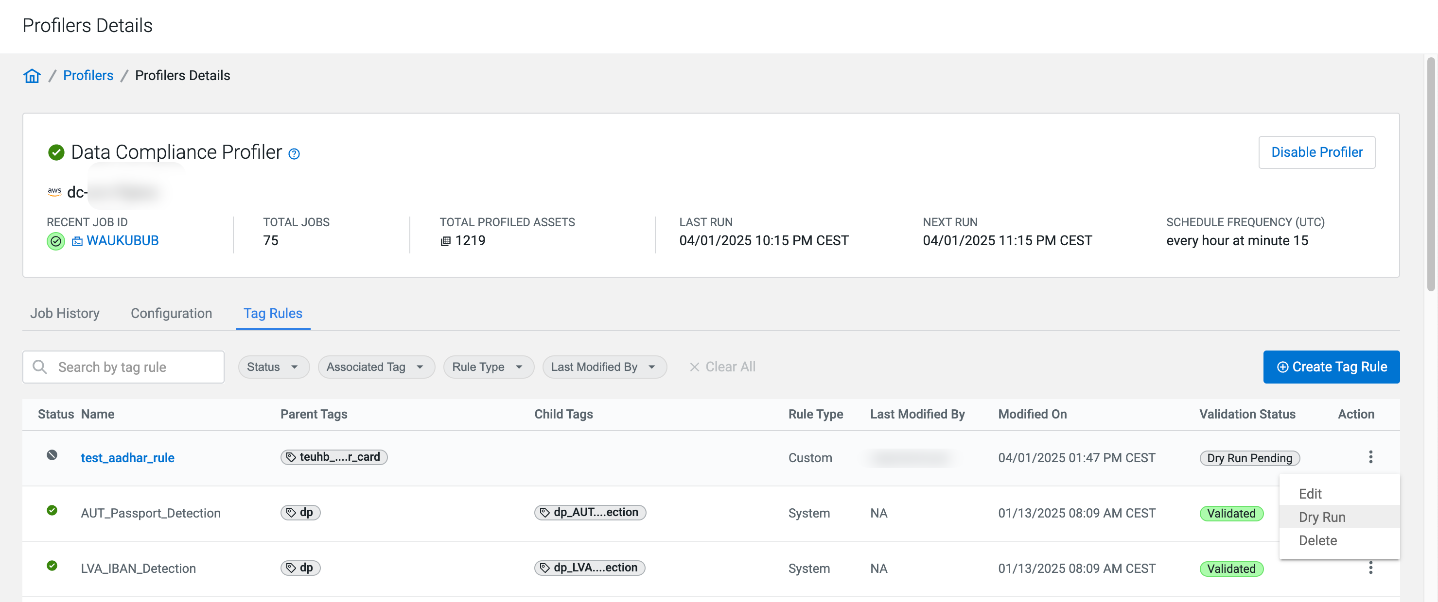 Go to Profilers > Data Compliance > Tag Rules.