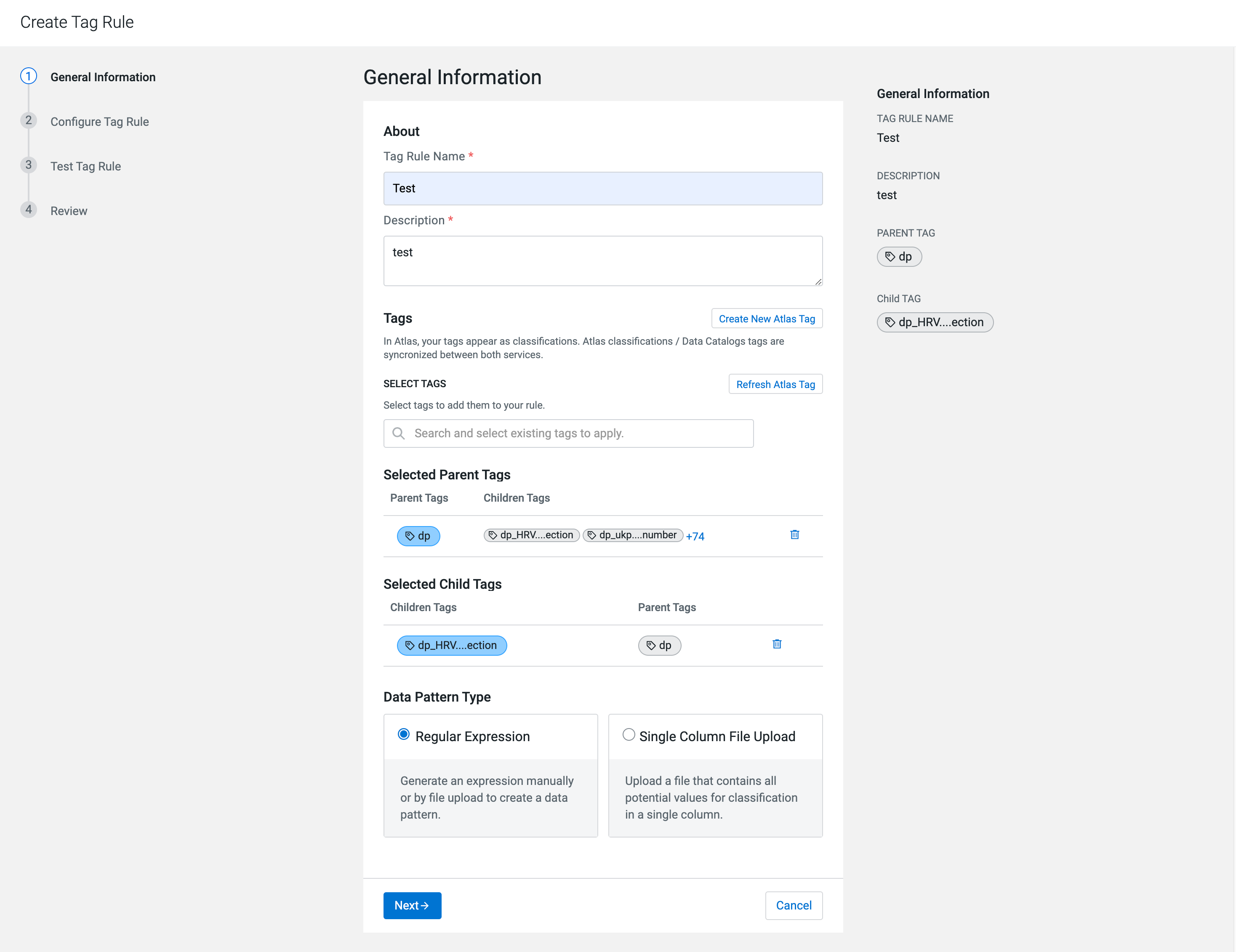 Creating regular expression based tag rule: