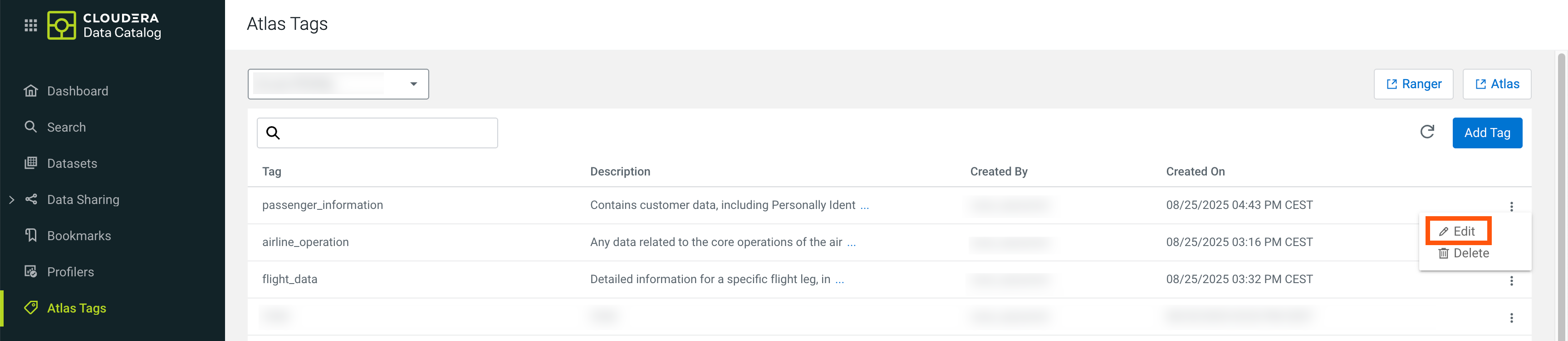 You can also edit or delete the Atlas tag as shown in the image. When you are editing the tag, you can only change the description or add new attributes.