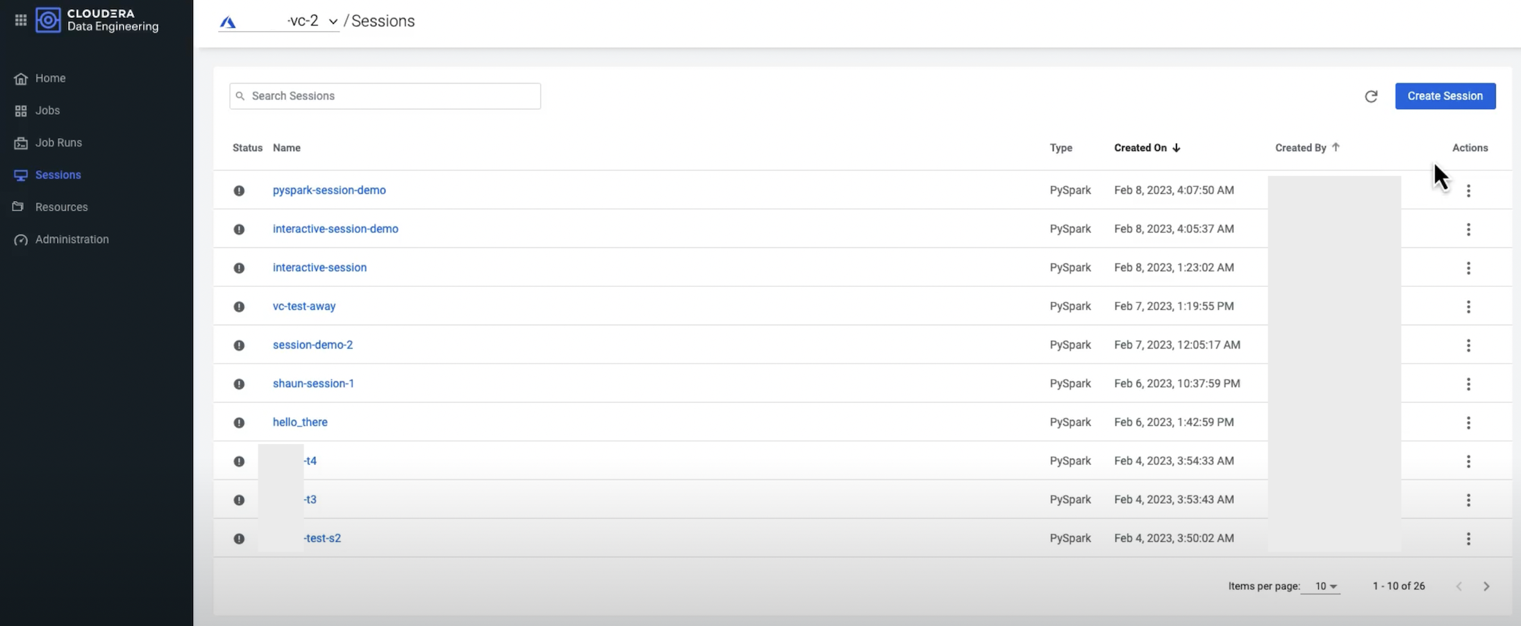 types. Learn how to use Cloudera Data Engineering Sessions using the user