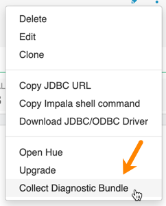 - The Collect Diagnostic Bundle menu option in Impala Virtual